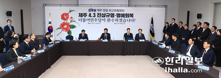 [ÇѶóÀϺ¸] Á¤Ã»·¡ ´õºÒ¾î¹ÎÁÖ´ç ´ëÇ¥´Â 3ÀÏ Á¦78ÁÖ³â Á¦ÁÖ4¡¤3 Èñ»ýÀÚ Ãß³ä½ÄÀ» ¸Â¾Æ Á¦ÁÖ¿¡¼ °³ÃÖÇÑ ÇöÀå ÃÖ°íÀ§¿øÈ¸ÀÇ¿¡¼ Á¦ÁÖ4¡¤3 Áø¾Ð °ø·Î ¼ÈÆ Ãë¼Ò¸¦ À§ÇÑ ¹ý °³Á¤°ú ±¹°¡Æø·Â ¹üÁË °ø¼Ò½ÃÈ¿ ÆóÁö, ´ç ³» Á¦ÁÖÁö¿øÈ¸¸¦ ±¸¼ºÀ» ÅëÇÑ 4´ë °úÇбâ¼ú¿ø ¿¬ÇÕÄ·ÆÛ½º Á¶¼º Áö¿ø¿¡ ³ª¼°Ú´Ù°í ¾à¼ÓÇß´Ù.