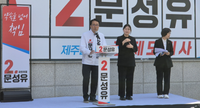 [ÇѶóÀϺ¸] ±¹¹ÎÀÇÈû ¹®¼ºÀ¯ Á¦ÁÖÆ¯º°ÀÚÄ¡µµÁö»ç È帴 "¹«³ÊÁö´Â Á¦ÁÖ °æÁ¦¸¦ ¹Ýµå½Ã »ì¸®°Ú´Ù"°í ¹àÇû´Ù.