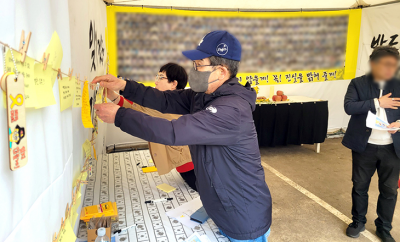 Ã߸ðºÐÇâ¼Ò´Â Àü³¯ºÎÅÍ 4¡¤16¼¼¿ùÈ£Âü»ç°¡Á·ÇùÀÇȸ Á¦ÁÖ±â¾ï°üÀÌ '¿ì¸®´Â ¼¼¿ùÈ£¸¦ ³ë¶û³ë¶ûÇØ'¶ó´Â À̸§À¸·Î ¿¬ '¼¼¿ùÈ£ Âü»ç 12ÁÖ±â Á¦ÁÖ Ã߸ðÇà»ç'·Î ¸¶·ÃµÆ´Ù. ºÐÇâ¼Ò¸¦ ãÀº ½Ã¹ÎµéÀº Ã߸ðÀÇ ¸¶À½À» ´ãÀº ³ë¶õ ÇÁ¸®Áö¾î ²ÉÀ» ¿Ã·Á³õ°í ¹¬³äÀ» Çϰí Ã߸ð ¸Þ½ÃÁö¸¦ ½á¼ ¸Å´Þ¾Ò´Ù. 'ÀØÁö ¾ÊÀ»²²', '±â¾ïÇÒ²²' µî Ã߸𠹮±¸µé·Î °¡µæÇß´Ù.