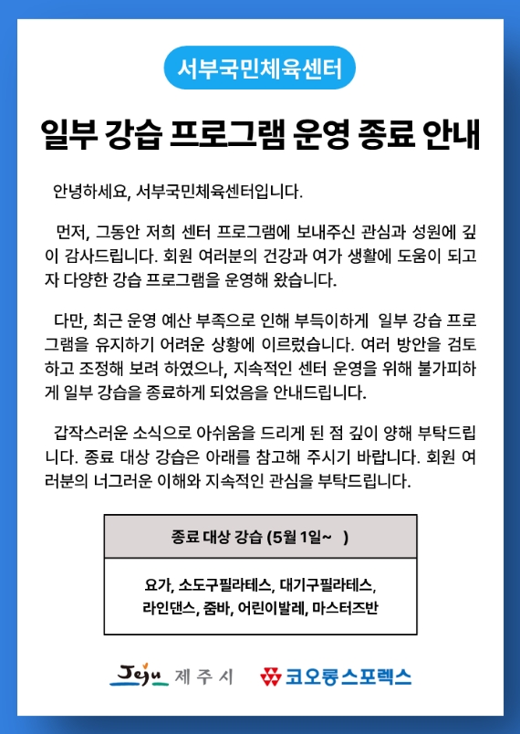 | ¼ºÎ±¹¹ÎüÀ°¼¾ÅÍ °½À ÇÁ·Î±×·¥ ¿î¿µ Á¾·á ¾È³»¹®. ÄÚ¿À·Õ ½ºÆ÷·º½º ȨÆäÀÌÁö °¥¹«¸® |