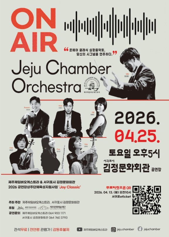 [ÇѶóÀϺ¸] ±Í¿¡ ÀÍÀº Ŭ·¡½Ä À½¾ÇÀ» µéÀ¸¸ç º½³¯À» Ãß¾ïÇÒ ¼ö ÀÖ´Â ¹«´ë°¡ ÀÖ´Ù. ¼±ÍÆ÷½Ã ±èÁ¤¹®Èȸ°ü 2026³â °ø¿¬Àå»óÁÖ´ÜüÀ°¼ºÁö¿ø»ç¾÷À¸·Î ÆîÄ¡´Â Á¦ÁÖüÀÓ¹ö¿ÀÄɽºÆ®¶ó(ÁöÈÖ ÀÓ´ëÈï)ÀÇ '¿Â ¿¡¾î'´Ù.