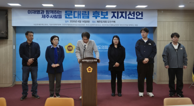 [ÇѶóÀϺ¸] ´õºÒ¾î¹ÎÁÖ´ç Á¦ÁÖµµÁö»ç °æ¼± °á¼±À» ¾ÕµÎ°í Ä£ÀÌÀç¸í°è Á¶Á÷À¸·Î ºÐ·ùµÇ´Â µµ³» ´Üü ȸ¿øµéÀÌ ¹®´ë¸² Èĺ¸ÀÇ ÁöÁö¸¦ ¼±¾ðÇß´Ù.