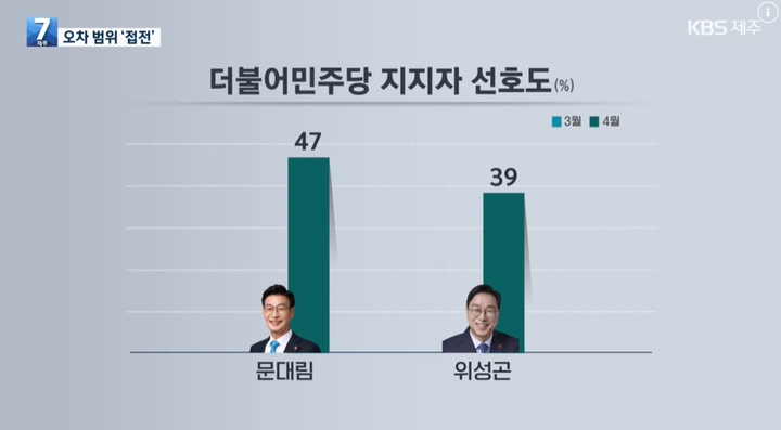 [ÇѶóÀϺ¸] 6¡¤3Á¦ÁÖÀÚÄ¡µµÁö»ç ¼±°Å ´õºÒ¾î¹ÎÁÖ´ç Èĺ¸ °æ¼± °á¼± ÅõÇ¥¸¦ ¾ÕµÎ°í ¹®´ë¸² Èĺ¸¿Í À§¼º°ï È帰¡ Á¢ÀüÀ» ¹úÀ̰í ÀÖ´Ù´Â ¿©·ÐÁ¶»ç °á°ú°¡ ³ª¿Ô´Ù.