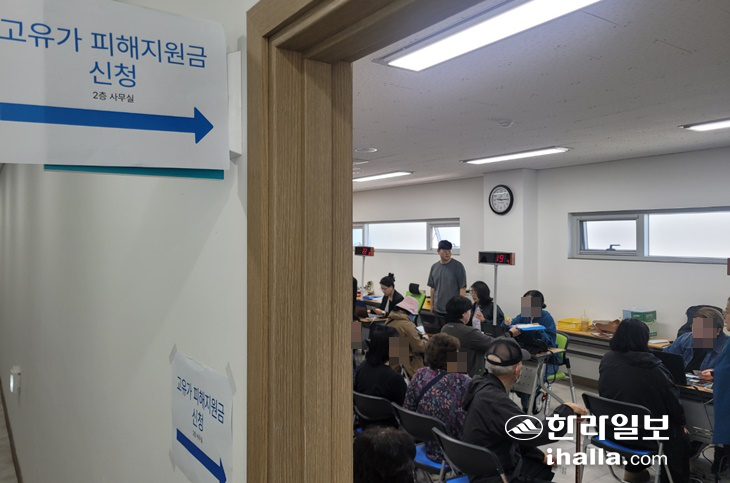 [ÇѶóÀϺ¸] Á¦ÁÖÁö¿ª¿¡¼µµ '°íÀ¯°¡ ÇÇÇØÁö¿ø±Ý' Áö±ÞÀÌ ½ÃÀ۵ƴÙ. ù³¯ÀÎ 27ÀÏ Á¦ÁÖ¿¡¼´Â ´ëü·Î Â÷ºÐÇÑ ºÐÀ§±â ¼Ó¿¡ Áö±ÞÀÌ ÀÌ·ïÁ³Áö¸¸ Áö±Þ ½Ã±â¸¦ È¥µ¿ÇØ Ã£¾Æ¿Ô´Ù°¡ Çê°ÉÀ½À» ÇÏ´Â µî ÀϺΠȥ¼±ÀÌ ºú¾îÁö±âµµ Çß´Ù.