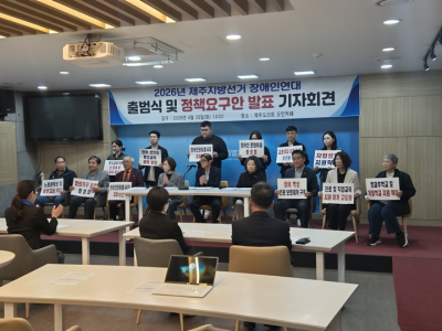 2026 Á¦ÁÖÁö¹æ¼±°Å Àå¾ÖÀο¬´ë´Â 28ÀÏ Á¦ÁÖµµÀÇȸ µµ¹ÎÄ«Æä¿¡¼ ±âÀÚȸ°ßÀ» ¿°í 7´ë ÇÙ½É Á¤Ã¥°ú 6°³ Àå¾Ö À¯Çüº° Á¤Ã¥ °úÁ¦¸¦ ¹ßÇ¥Çß´Ù. ±èäÇö±âÀÚ
