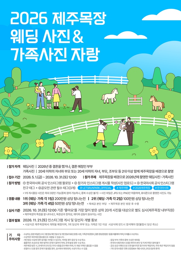 [ÇѶóÀϺ¸] Çѱ¹¸¶»çȸ Á¦ÁÖ¸ñÀåÀÌ ´ÙÀ½´Þ 1ÀϺÎÅÍ 10¿ù 31ÀϱîÁö '2026³â Á¦ÁÖ¸ñÀå ¿þµù¡¤°¡Á· »çÁø °ø¸ðÀü'À» °³ÃÖÇÑ´Ù°í 29ÀÏ ¹àÇû´Ù. <»çÁø>