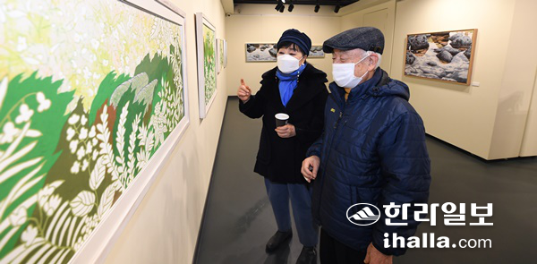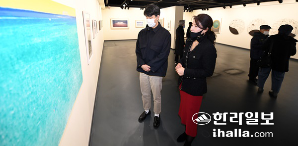 ÇÑ¹Ì¶ó °¶·¯¸® À̵ð °üÀåÀº ÀÌ Àü½Ã¿¡ ´ëÇØ "Äڷγª19·Î ¿Ã ÇÑ ÇØ Èûµç ½Ã±â¸¦ °Ç³Ê¿Ô´Âµ¥ ¹«»çÈ÷ 2020³âÀ» ³Ñ±â°í 2021³â¿¡´Â ÇÑÃþ ÁÁÀº ±â¿îÀÌ ¿ÔÀ¸¸é ÇÏ´Â »ý°¢À¸·Î '¼±¹°'À̶ó´Â ŸÀÌÆ²À» ºÙ¿´´Ù"¸ç "Á¦ÁÖ¿¡¼ ¼öÁØ ³ôÀº ÀÛǰ ¼¼°è¸¦ º¸¿©ÁÖ´Â ÀÛ°¡µéÀ» ¼±Á¤ÇØ ¸¶·ÃÇÑ Àü½ÃÀÎ ¸¸Å µµ¹ÎµéÀÌ ÆíÇÑ ½Ã°£¿¡ ¹æ¹®ÇØ °ü¶÷ÇßÀ¸¸é ÇÑ´Ù"´Â Àλ縻À» ÀüÇß´Ù.