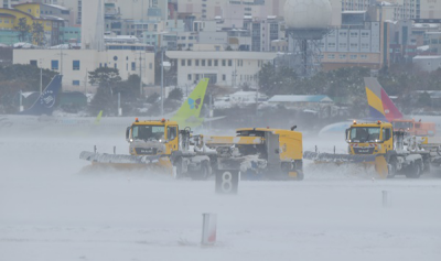 Æø¼³°ú °Ç³À¸·Î Ç×°ø±â ¿îÇ×ÀÌ Áß´ÜµÈ 8ÀÏ ¿ÀÈÄ Á¦ÁÖ±¹Á¦°øÇ× °è·ùÀå¿¡¼ Çѱ¹°øÇ×°ø»ç Ư¼öÂ÷·®ÀÌ Á¦¼³ÀÛ¾÷À» Çϰí ÀÖ´Ù. °Èñ¸¸±âÀÚ