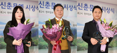 2021 ÇѶóÀϺ¸ ½ÅÃá¹®¿¹ ½Ã»ó½ÄÀÌ 21ÀÏ ¿ÀÈÄ 2½Ã ÇѶóÀϺ¸ 3Ãþ ȸÀǽǿ¡¼ ¿·È´Ù. À̹ø ½Ã»ó½ÄÀº Äڷγª19 ¿©ÆÄ¿¡ µû¶ó º°µµ ÃÊûÀÚ ¾øÀÌ ¼ö»óÀڵ鸸 Âü¼®ÇØ °£¼ÒÇÏ°Ô Ä¡·¯Á³´Ù. À̳¯ÀÇ ÁÖÀΰøÀº ½Ã 'µµ¼°ü'À¸·Î ´ç¼±ÇÑ ½ÅÀ±ÁÖ ½ÃÀÎ(35, Á¦ÁÖ), ½ÃÁ¶ 'Æó±³'·Î ´ç¼±ÇÑ ±è±ÔÇÐ ½ÃÀÎ(62, ´ë±¸), ¼Ò¼³ '¶°µµ´Â µµ½Ã'·Î ´ç¼±ÀÛ ¾ø´Â °¡ÀÛ¿¡ ¼±Á¤µÈ Â÷¿µÀÏ ¼Ò¼³°¡(48, ¿ï»ê)¿´´Ù.