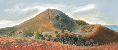 ¼Õ³à´Â ÇҸӴϸ¦ ÈÙü¾î¿¡ Å¿ì°í ÁýÀ» ³ª¼±´Ù. ¹Ù´Ù·Î °¡´Â ±æ, ³ªÁö¸·ÇÑ ¼¶ÀÇ Ç³±¤ÀÌ ÆîÃÄÁø´Ù. µ¹Áý ½½·¹ÀÌÆ® ÁöºØ, Æø³¶, °ËÀº µ¹´ã, ¿À¸§ÀÌ º¸ÀÌ°í ¾î´Àµ¡ Á¦ÁÖ¼¶ÀÇ Ç³°æÀÌ µÇ¾î¹ö¸° ¾ßÀÚ¼ö°¡ ¼¼Â÷°Ô Èçµé¸°´Ù. ¸ñÀç·Î ¹Ù´ÚÀÌ ±ò¸° ÇØ¾È »êÃ¥·Î ³Ê¸Ó·Ð ¿Ü·ÎÀÌ ¼¶ÀÌ ¶° ÀÖ´Ù. ¿ÀÀÏÆÄ½ºÅÚ·Î ±×·ÁÁø ±× Àå¸éµé¿¡ ´Ùä·Î¿î °Ü¿ï Á¦ÁÖÀÇ »öµéÀÌ ¹è¾î³´Ù.