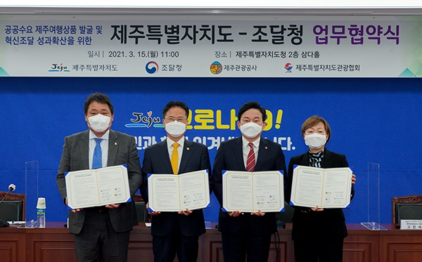 ¡¡Á¶´ÞûÀº 15ÀÏ Á¦ÁÖÀÚÄ¡µµ¿Í '°ø°ø¼ö¿ä Á¦ÁÖ¿©Çà»óǰ ¹ß±¼ ¹× Çõ½ÅÁ¶´Þ ¼º°ú È®»êÀ» À§ÇÑ ¾÷¹«Çù¾à½Ä'À» µµÃ» »ï´ÙȦ¿¡¼ ±èÁ¤¿ì Á¶´ÞûÀå, °íÀº¼÷ Á¦ÁÖ°ü±¤°ø»ç »çÀå, ºÎµ¿¼® Á¦ÁÖµµ°ü±¤Çùȸ ȸÀå µîÀÌ Âü¼®ÇÑ °¡¿îµ¥ ü°áÇß´Ù°í ¹àÇû´Ù. <<»çÁø