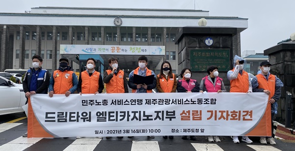 ¡¡Á¦ÁÖ°ü±¤¼ºñ½º³ëÁ¶ µå¸²Å¸¿ö ¿¤Æ¼Ä«Áö³ëÁöºÎ´Â 16ÀÏ Á¦ÁÖµµÃ» ¾Õ¿¡¼ Ãâ¹ü ±âÀÚȸ°ßÀ» °®°í "Á¦ÁÖÁö¿ª Ä«Áö³ë ³ëµ¿ÀÚÀÇ ±ÇÀÍÀ» À§ÇØ ÈûÂ÷°Ô ÅõÀïÇϰڴÙ"°í ¸»Çß´Ù.