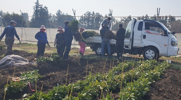 Á¦ÁÖ°¨ÇùÀÌ ³ó°¡µéÀÇ »çÀü ½ÅûÀ» ¹Þ¾Æ ¸ð¼ö¿ø°ú À°¹¦Àå¿¡¼ Ű¿î 22°³ ǰÁ¾ÀÇ °¨±Ö³ª¹« 10¸¸¿©±×·ç¸¦ ³ó°¡¿¡ °ø±ÞÇϰí ÀÖ´Ù. Á¦ÁÖ°¨Çù Á¦°ø