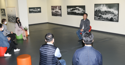 16ÀÏ ¿ÀÈÄ 3½Ã ÇѶóÀϺ¸ 1Ãþ¿¡ ÀÚ¸® ÀâÀº °¶·¯¸® À̵ð(ED). Áö³´Þ 18ÀϺÎÅÍ '½Ã°£'À» ÁÖÁ¦·Î ÃÊ´ëÀüÀ» ¿°í ÀÖ´Â ¹®Ã¢¹è ÀÛ°¡°¡ °ü¶÷°´µé°ú ¸¸³µ´Ù. ¹® ÀÛ°¡´Â ÇÑ¹Ì¶ó °¶·¯¸® À̵ð °üÀåÀÌ ÁøÇàÀ» ¸ÃÀº 'ÀÛ°¡¿ÍÀÇ ´ëÈ'¿¡ Âü¼®ÇØ ÀÛ¾÷¿¡ ¾ôÈù À̾߱⸦ Ç®¾î³Â´Ù.
