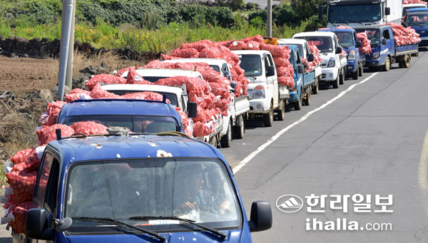 19ÀÏ ¿ÀÀü ´ëÁ¤³óÇù À¯Åë¼¾ÅÍ ÀÔ±¸¿¡ ¸¶´Ã ¼ö¸Å¸¦ ±â´Ù¸®´Â Â÷·®µéÀÌ ±æ°Ô ÁÙÁö¾î ÀÖ´Ù. °Èñ¸¸±âÀÚ |