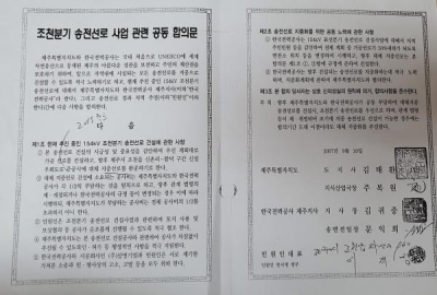 ±èÅÂȯ Á¦ÁÖÆ¯º°ÀÚÄ¡µµÁö»ç¿Í ±è±ÍÁß Çѱ¹Àü·Â°ø»ç Á¦ÁÖÁö»çÀå, ÀÌÀ籤 Á¶ÃµÀ¾ ¹Î¿øÀÎ ´ëÇ¥´Â Áö³ 2007³â 9¿ù 20ÀÏ Á¦ÁÖÀÇ ¾Æ¸§´Ù¿î °æ°ü°ú ÁÖ¹ÎÀÇ Àç»ê±ÇÀ» º¸È£Çϱâ À§ÇØ Á¶ÃµºÐ±â ¼ÛÀü¼±·Î »ç¾÷ °øµ¿ ÇÕÀǹ®À» ÀÛ¼º, ¼¸íÇß´Ù.