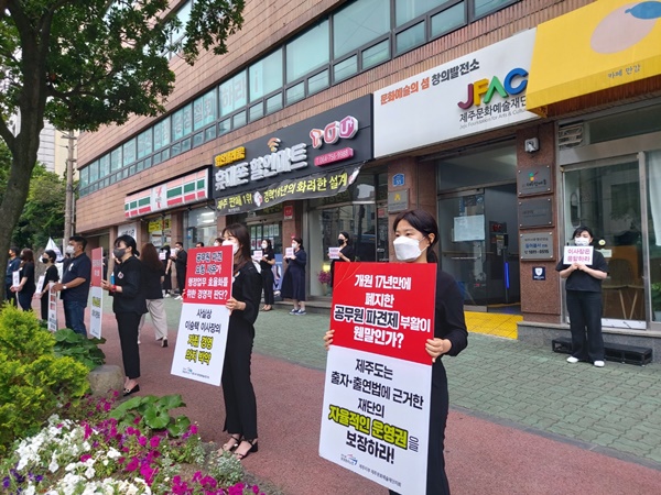 Á¦ÁÖ¹®È¿¹¼úÀç´Ü(ÀÌÇÏ Àç´Ü) °æ¿µ±âȹ½ÇÀå¿¡ Á¦ÁÖµµ °ø¹«¿øÀÌ ÆÄ°ßµÈ °ÍÀ» µÎ°í Àç´Ü ³»ºÎ¿¡¼ °ü·Ã Á¶·Ê¸¦ ÆóÁöÇØ¾ß ÇÑ´Ù´Â ¸ñ¼Ò¸®°¡ ³ª¿À°í ÀÖ´Ù. ¹ÎÁÖ³ëÃÑ °ø°ø¿î¼ö³ëÁ¶ Á¦ÁÖÁöºÎ Á¦ÁÖ¹®È¿¹¼úÀç´ÜÁöȸ(ÀÌÇÏ ³ëÁ¶)´Â Áö³ 2ÀÏ ¼º¸íÀ» ³»°í "Á¦ÁÖ¹®È¿¹¼úÀç´Ü ¼³¸³ ¹× À°¼º Á¶·ÊÀÇ ½Ã´ëÂø¿ÀÀû Á¶Ç× ÆóÁö¿¡ ³ª¼³ °Í"À̶ó°í ¹àÇû´Ù.