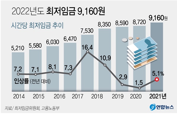 ³»³âµµ ½Ã°£´ç ÃÖÀúÀÓ±ÝÀÌ ¿ÃÇØº¸´Ù 5.1% ¿À¸¥ ½Ã°£´ç 9160¿øÀ¸·Î °áÁ¤µÈ °ÍÀ» µÎ°í °æ¿µ°è¿Í ³ëµ¿°è ¸ðµÎ ¹Ý¹ßÇϰí ÀÖ´Ù.