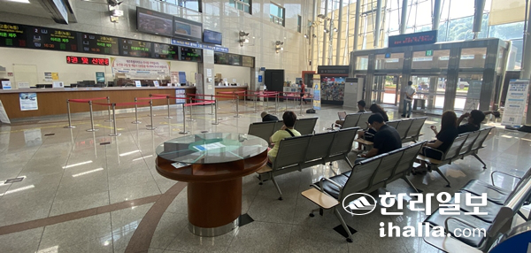 °°Àº³¯ Á¦ÁÖ¿©°´¼±Å͹̳ΠÃ⡤µµÂø ´ëÇսǿ¡µµ °³º° °ü±¤°´µé¸¸ µå¹®µå¹® º¸¿´°í, ¿©°´¼±Å͹̳ΠÁÖÂ÷Àå¿¡µµ À̿밴ÀÌ ¾ø¾î Æò¼Òº¸´Ù ÇÑ»êÇÑ ¸ð½ÀÀ» º¸¿´´Ù.