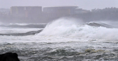 13ÀÏ ¿ÀÈÄ 2½Ã¸¦ ±âÇØ Á¦ÁÖµµ ³²ÂÊ ¹Ù±ù ¸Õ¹Ù´Ù¿¡ ÅÂdz°æº¸°¡ ³»·ÁÁø °¡¿îµ¥ À̳¯ ¼±ÍÆ÷½Ã Áß¹® ¾Õ¹Ù´Ù¿¡ °Å¼¾ ÆÄµµ°¡ ¸ô¾ÆÄ¡°í ÀÖ´Ù. °Èñ¸¸±âÀÚ