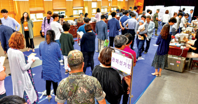 2018³â Áö¹æ¼±°Å¿¡¼ Á¦ÁÖ Áö¿ª À¯±ÇÀÚµéÀÌ »çÀü ÅõÇ¥¸¦ Çϰí ÀÖ´Ù. /»çÁø=ÇѶóÀϺ¸DB