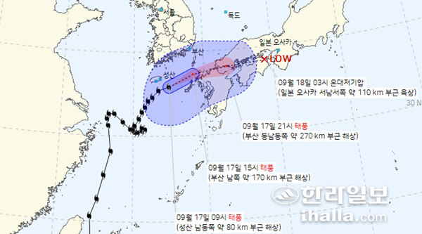 ¡¡'ÂùÅõ'´Â À̳¯ ¿ÀÈÄ 3½Ã ºÎ»ê ³²ÂÊ ¾à 170km ºÎ±Ù ÇØ»ó±îÁö ºü¸£°Ô À̵¿ÇÑ ÈÄ 18ÀÏ »õº®¿¡ ¿Â´ëÀú±â¾ÐÀ¸·Î ¾à鵃 °ÍÀ¸·Î º¸ÀδÙ.