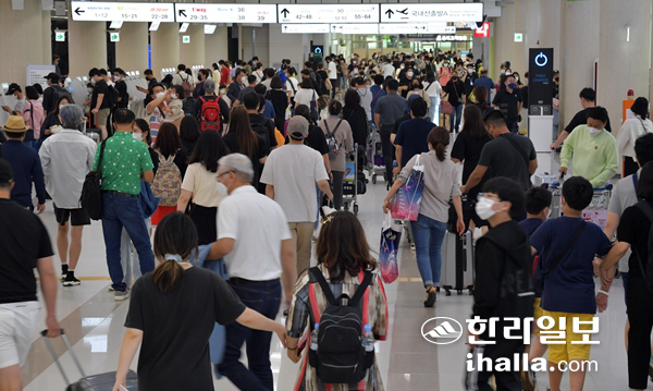 Ãß¼®¿¬ÈÞ ¸¶Áö¸·³¯ÀÎ 22ÀÏ Á¦ÁÖ±¹Á¦°øÇ× Ãâ¹ß´ëÇսǿ¡´Â ÀÏ»óÀ¸·Î µ¹¾Æ°¡·Á´Â »ç¶÷µéÀÌ ¸ô¸®¸é¼ È¥ÀâÀ» ÀÌ·ç°í ÀÖ´Ù. °Èñ¸¸±âÀÚ |