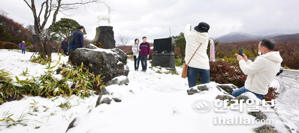 | 9ÀÏ Á¦ÁÖ »êÁö¿¡ ´ë¼³ÁÖÀǺ¸°¡ ³»·ÁÁø °¡¿îµ¥ ÇѶó»ê 1100°íÁö¸¦ ãÀº °ü±¤°´µéÀÌ ½×ÀÎ ´«À» ¹è°æÀ¸·Î ±â³ä»çÁøÀ» ÂïÀ¸¸ç ù´«À» ¸¸³£Çϰí ÀÖ´Ù. ÀÌ»ó±¹ ±âÀÚ |