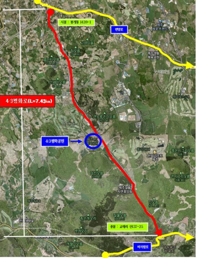 Á¦ÁÖ4¡¤3 ¾ÕµÖ ¸í¿¹µµ·Î¸í '4¡¤3ÆòÈ·Î' ÃßÁø '»¡°£ºÒ'