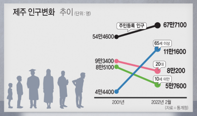 Á¦ÁÖÁö¿ªÀÇ Àα¸°¡ ÃÖ±Ù 20³âµ¿¾È 13¸¸¸í ³Ñ°Ô Áõ°¡ÇßÁö¸¸ 20¼¼ ¹Ì¸¸ Àα¸´Â ´«¿¡ ¶ç°Ô °¨¼ÒÇϰí, 65¼¼ ÀÌ»ó Àα¸´Â °©Àý ÀÌ»ó Áõ°¡ÇÏ´Â ÀúÃâ»ê °í·ÉȰ¡ ½É°¢ÇÑ ¼öÁØÀ¸·Î ³ªÅ¸³µ´Ù. °áÈ¥À» ¸¹ÀÌ ÇÏ´Â ¿¬·ÉÃþÀÎ 20~30´ë Àα¸ °¨¼Ò°¡ ¶Ñ·ÇÇØÁö¸é¼ ÀÚ¿¬½º·´°Ô ÇзÉÀα¸ °¨¼Ò·Î À̾îÁ® ¾ÕÀ¸·Î »ý»ê°¡´ÉÀα¸ °¨¼Ò·Î ÀÎÇÑ ¼ºÀ嵿·Â ÀúÇϰ¡ Çö½Ç·Î ´Ù°¡¿À°í ÀÖ´Ù.