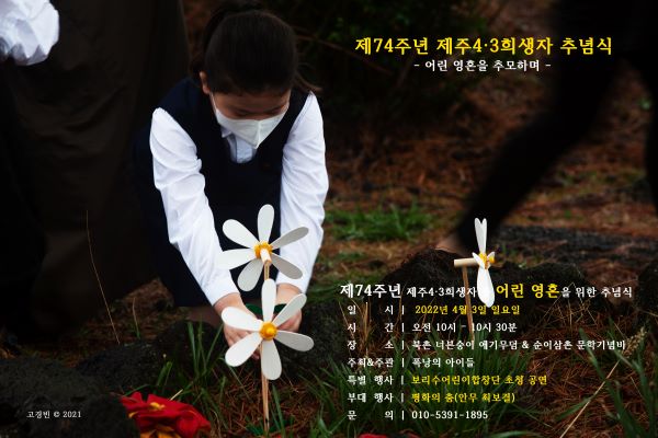Á¦74ÁÖ³âÀ» ¸ÂÀÌÇÏ´Â Á¦ÁÖ4¡¤3Èñ»ýÀÚ Ãß³ä½Ä¿¡ ÁîÀ½ÇØ Èñ»ýÀÚ Áß ¾î¸° ¿µÈ¥À» Ã߸ðÇÏ´Â º°µµÀÇ ÀÛÀº Ãß³ä½ÄÀÌ 4¿ù 3ÀÏ ¿ÀÀü 10½Ã ºÏÃÌ ³Êºì¼þÀÌ ¾Ö±â¹«´ý°ú ¼øÀÌ»ïÃÌ ¹®Çбâ³äºñ¿¡¼ ¿¸°´Ù. Æø³¶ÀÇ ¾ÆÀ̵éÀÌ ¸¶·ÃÇÑ ÀÚ¸®´Ù.