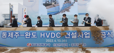 Çѱ¹Àü·Â°ø»ç´Â 13ÀÏ Á¦Áֽà »ï¾çµ¿ ¼ÒÀç Á¦Áֽà »ï¾çµ¿ ¼ÒÀç µ¿Á¦ÁÖº¯Àü¼Ò¿¡¼ Á¦ÁÖ¡¤³»·ú Ãʰí¾Ð Á÷·ù ¼ÛÀü¼±·Î(HVDC) Á¦3¿¬°è¼± Âø°ø½ÄÀ» °³ÃÖÇß´Ù. À̻󱹱âÀÚ