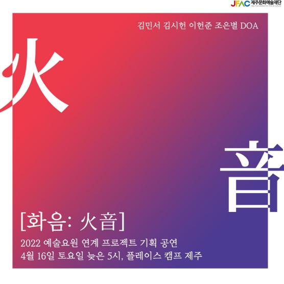 µÎ °ø¿¬¿£ ¿¹¼ú¿ä¿øÀ¸·Î ±è¹Î¼(°Å¹®°í), ±è½ÃÇå(ÇǸ®), ÀÌÇåÁØ(´ë±Ý)ÀÌ Ã⿬ÇÏ°í µµ³» ¿¹¼ú°¡ Á¶Àºº°(¼Ò¸®²Û), DOA(Űº¸µð½ºÆ®)°¡ ÇÔ²²ÇÑ´Ù. ¸ðµÎ ¹«·á °ø¿¬ÀÌ´Ù. °ü¶÷ ½ÅûÀº Á¦ÁÖ¹®È¿¹¼úÀç´Ü ȨÆäÀÌÁö °Ô½ÃÆÇÀ» ÅëÇØ ÇÏ¸é µÈ´Ù.