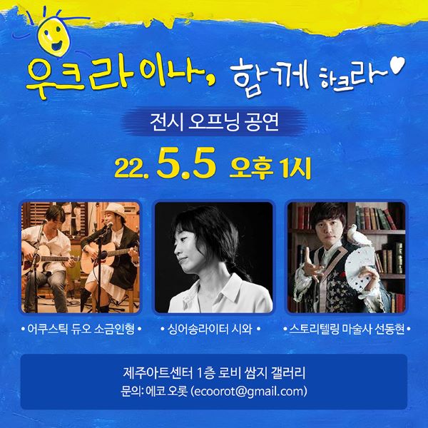 5¿ù 5ÀϺÎÅÍ Á¦ÁÖ¾ÆÆ®¼¾ÅÍ 1Ãþ ·Îºñ ½ÓÁö °¶·¯¸®¿¡¼´Â ¿ìÅ©¶óÀ̳ª ÀüÀï ÇÇÇØÀÚ¸¦ Áö¿øÇϱâ À§ÇØ µµ³»¡¤¿Ü ¿¹¼ú°¡µéÀÌ Âü¿©ÇÏ´Â '¿ìÅ©¶óÀ̳ª, ÇÔ²² ÇÏÅ©¶ó!' ±â±Ý ¸¶·Ã Àü½Ã°¡ ¿¸°´Ù.