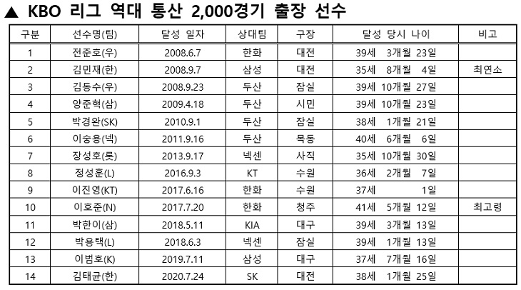 ǥ Z ȣ 2000 ̶ ž Ҵ. 14Ÿ ߰ϸ 3000Ÿ KBO ù ǮŸ ̸ ȴ.
