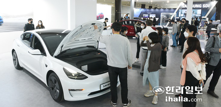 3ÀÏ ¼±ÍÆ÷½Ã ¼ÒÀç Á¦ÁÖ±¹Á¦ÄÁº¥¼Ç¼¾ÅÍ¿¡¼ °³¸·ÇÑ Á¦9ȸ ±¹Á¦Àü±âÀÚµ¿Â÷¿¢½ºÆ÷ Âü°¡ÀÚµéÀÌ Àü±âÂ÷¸¦ µÑ·¯º¸°í ÀÖ´Ù. À̻󱹱âÀÚ
