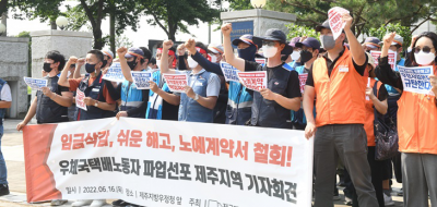 ÇÑÆí Á¦ÁÖ ¿ìü±¹ÅÃ¹è ³ëµ¿Àڵ鵵 Áö³ 16ÀÏ "¿ìÁ¤»ç¾÷º»ºÎ°¡ Á¦½ÃÇÑ »õ °è¾à¼´Â ½¬¿î ÇØ°í¸¦ À§ÇÑ °è¾àÁ¤Áö, °è¾àÇØÁö Á¶Ç×ÀÌ ´ã±ä ³ë¿¹°è¾à¼"¶ó°í ±ÔźÇÏ¸ç ÆÄ¾÷ µ¿ÂüÀ» ¿¹°íÇß¾ú´Ù.
