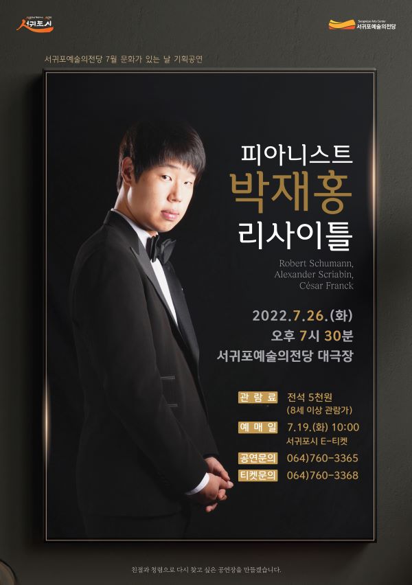 À̹ø ¸®»çÀÌÆ²¿¡¼´Â ¹ÚÀçÈ«ÀÌ Æ¯º°È÷ ¾Æ³¢´Â ÀÛǰµé·Î ÇÁ·Î±×·¥ÀÌ ±¸¼ºµÅ ½´¸¸ÀÇ ÇǾƳ븦 À§ÇÑ ¾Æ¶óº£½ºÅ© CÀåÁ¶ Op.18, ÇÇ¾Æ³ë ¼Ò³ªÅ¸ Á¦1¹ø F-sharp´ÜÁ¶ '´ë¼Ò³ªÅ¸' Op.11 µîÀ» °¨»óÇÒ ¼ö ÀÖ´Ù. ÀÏ¹Ý °ü¶÷±Ç ¿¹¸Å´Â ¿À´Â 19ÀÏ ¿ÀÀü 10½ÃºÎÅÍ ¼±ÍÆ÷½Ã E-ƼÄÏ¿¡¼ ¼±Âø¼øÀ¸·Î ¿¹¸Å °¡´ÉÇÏ´Ù. Àü¼® 5000¿øÀ̸ç, 8¼¼ ÀÌ»ó °ü¶÷ °¡´ÉÇÏ´Ù.