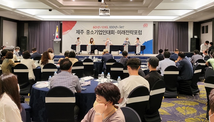 18ÀÏ Á¦Áֽà ¸ÞÁ¾±Û·¡µåÁ¦ÁÖ Å©¸®½ºÅ»È¦¿¡¼ ¿¸° \\\'2022³â Á¦ÁÖ Áß¼Ò±â¾÷Àδëȸ ¹× ¹Ì·¡Àü·«Æ÷·³\\\'¿¡¼ Âü¼®ÀÚµéÀÌ Á¦ÁÖ°æÁ¦ ¹ßÀüÀ» À§ÇÑ Áß¼Ò±â¾÷ ±ÔÁ¦Çõ½Å ¹æ¾È¿¡ ´ëÇØ Åä·ÐÇϰí ÀÖ´Ù. Áß¼Ò±â¾÷Áß¾Óȸ Á¦ÁÖÁö¿ªº»ºÎ Á¦°ø
