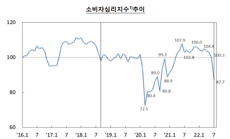 7¿ù ¼ÒºñÀڽɸ®Áö¼ö 87.7·Î Àü¿ùº¸´Ù 12.6p Ç϶ô