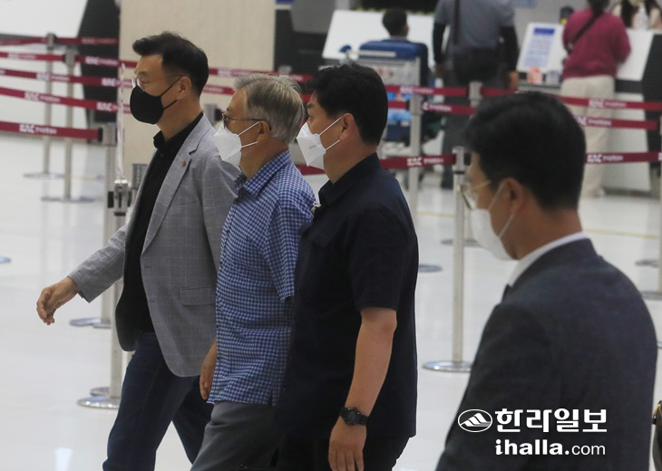 | 1ÀÏ ¿ÀÈÄ ¿©¸§ ÈÞ°¡Â÷ Á¦ÁÖ°øÇ׿¡ µµÂøÇÑ ¹®ÀçÀÎ Àü ´ëÅë·É°ú ºÎÀÎ ±èÁ¤¼÷ ¿©»ç°¡ ¹®´ë¸² Àü JDC ÀÌ»çÀåÀÇ ¾È³»¸¦ ¹ÞÀ¸¸ç °øÇ×À» ³ª¼°í ÀÖ´Ù. ¿¬ÇÕ´º½º |