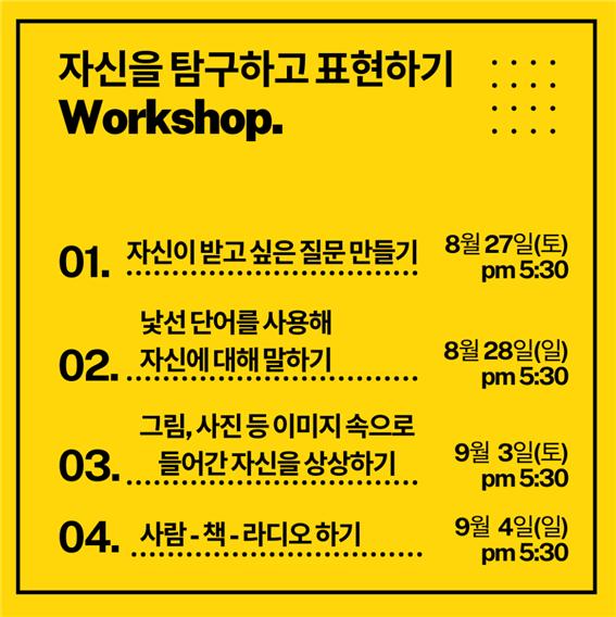 ¢ºÃ¥ÀÚ±¹=±¸ÁÂÀ¾ µ¿³×Ã¥¹æ 'Ã¥ÀÚ±¹'Àº Á¦ÁÖ´ë Çмú¿¬±¸±³¼öÀÎ À±¿©ÀÏ ÀÛ°¡ÀÇ ÁøÇàÀ¸·Î ¿À´Â 27Àϰú 28ÀÏ, ±×¸®°í 9¿ù 3Àϰú 4ÀÏ MBTI·Î´Â ¼³¸íµÇÁö ¾Ê´Â '³ªµµ Àß ¸ð¸£´Â ³ª'¸¦ ¸¸³ª´Â 'ÀÚ½ÅÀ» ޱ¸Çϰí Ç¥ÇöÇϱ⠿öÅ©¼ó'À» ¿ ¿¹Á¤ÀÌ´Ù.
