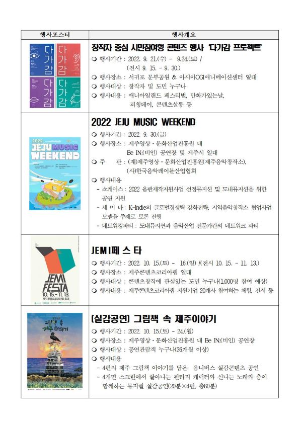 ÁøÈï¿øÀº 30ÀÏ ¢¹ÇѸ²ÀÛÀº¿µÈ°ü ±âȹÀü '´Ù½Ã ¿ì¸® °¡±îÀÌ' ¢¹ºñÀÎ °ø¿¬Àå Åõ¾î ¢¹Ã¢ÀÛÀÚ Á᫐ ½Ã¹ÎÂü¿©Çü ÄÜÅÙÃ÷ Çà»ç '´Ù°¡°¨ ÇÁ·ÎÁ§Æ®' ¢¹2022 JEJU MUSIC WEEKEND ¢¹JEMIÆä½ºÅ¸ ¢¹½Ç°¨°ø¿¬ ±×¸²Ã¥ ¼Ó Á¦ÁÖÀÌ¾ß±â µî ¿Ã ÇϹݱâ ÁÖ¿ä Çà»ç °èȹÀ» ¹ßÇ¥Çß´Ù.