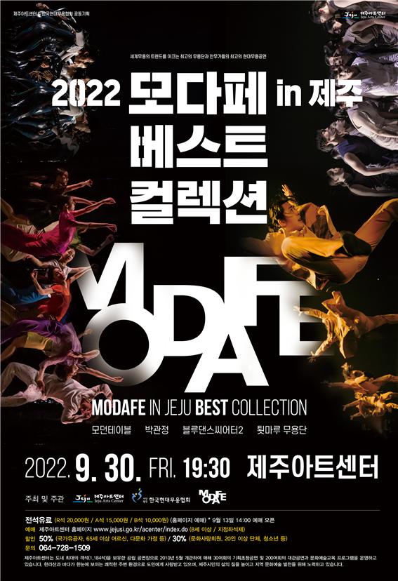 À̹ø '¸ð´ÙÆä in JEJU º£½ºÆ® Ä÷º¼Ç' °ø¿¬Àº À¯¸í Çö´ë¹«¿ë´ÜÀÇ ´ëÇ¥ÀÛÀ¸·Î ±¸¼ºµÆ´Ù. ¸ð´øÅ×À̺í(Çܺ£½º Ham:beth), ¹Ú°üÁ¤(½Åµµ½Ã), ºí·ç´í½º¾¾¾îÅÍ2(½Ã°£ À§ÀÇ ½Ã°£), Åò¸¶·ç ¹«¿ë´Ü(The New Human Race) µî ±â´ëµÇ´Â ¾È¹«°¡µé°ú ¹«¿ë´ÜÀÌ Ãâ¿¬ÇØ À¯´ÏÅ©ÇÑ Çö´ë¹«¿ëÀÇ ¾Æ¸§´Ù¿ò°ú ¼¼·Ã¹Ì¸¦ °¨»óÇÒ ¼ö ÀÖ´Â ±âȸ´Ù.