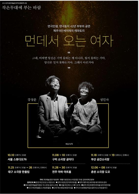 ÇÑÆí ±Ø´Ü ¼¼ÀÌ·¹´Â ¿¬±ØÀÎ ºÎºÎÀÎ °»óÈÆ¡¤Á¤¹ÎÀÚÀÇ 2À뱯 '¸Õµ¥¼ ¿À´Â ¿©ÀÚ'¸¦ Àü±¹ ¹«´ë¿¡ ¿Ã¸°´Ù. ÀÌ´Þ ÃÊ ¼¿ï¿¡¼ ù °ø¿¬À» Çß°í, 11¿ù°ú 12¿ù Àü±¹ 5°÷À» µ¹¸ç °ü°´°ú ¸¸³¯ ¿¹Á¤ÀÌ´Ù.