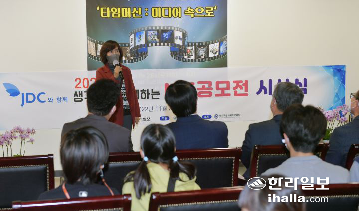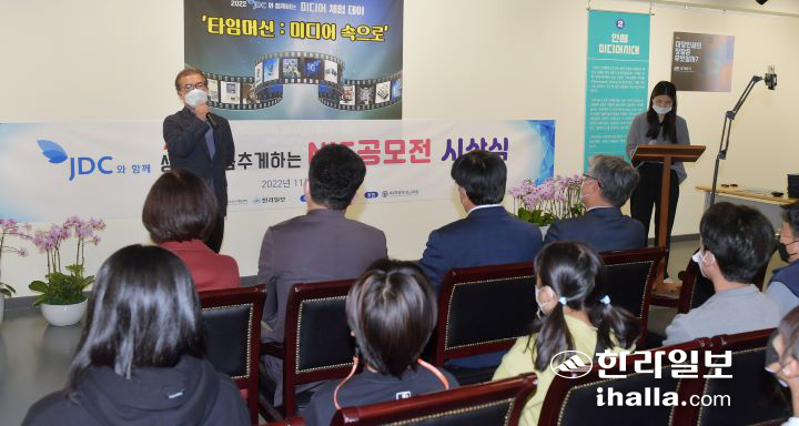 '2022 JDC¿Í ÇÔ²²ÇÏ´Â ¹Ìµð¾î üÇè µ¥ÀÌ'°¡ 26ÀÏ ÇѶóÀϺ¸ 1Ãþ °¶·¯¸®ED¿¡¼ ¿·È´Ù. À̳¯ ¿ÀÇÁ´×À» °âÇÑ '2022 JDC¿Í ÇÔ²² »ý°¢À» ÃãÃß°ÔÇÏ´Â NIE °ø¸ðÀü ½Ã»ó½Ä'¿¡´Â JDC ¹ÚöÈñ Åõ»ç»ç¾÷º»ºÎÀå, ÇѶóÀϺ¸ ÀÌÀ±Çü ÆíÁý±¹Àå, Á¦ÁÖNIEÇÐȸ ¹ÚÁøÈñ ȸÀå°ú Á¦ÁÖÆ¯º°ÀÚÄ¡µµÀÇȸ ±èâ½Ä ±³À°À§¿øÀå, Á¦ÁÖµµ±³À°Ã» °í°æ¼ö ±³À°±¹Àå ¹× °ü°èÀÚµéÀÌ ÀÚ¸®Çß´Ù. ½Ã»ó½Ä ÈÄ ¼ö»óÀÚ¿Í ³»ºóµéÀÌ ±â³äÃÔ¿µÀ» Çϰí ÀÖ´Ù. À̻󱹱âÀÚ