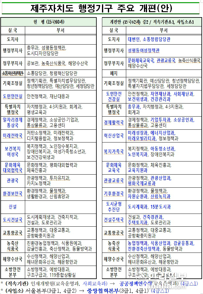 Á¦ÁÖÀÚÄ¡µµ´Â 15°³ ½Ç±¹Áß ±âȹÁ¶Á¤½Ç°ú Ưº°ÀÚÄ¡ÇàÁ¤±¹ µî 5°³½Ç±¹À» Á¦¿ÜÇÏ°í ³ª¸ÓÁö ½Ç±¹ÀÇ ¸íΰú ±â´ÉÀ» ¹Ù²Ù°í 60°³°ú¿¡¼ 62°³°ú·Î ÀçÆíÇß´Ù.