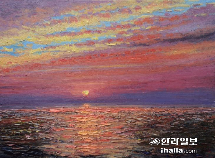 Àü½ÃÀå¿£ ÀÛ°¡°¡ Áö³ ¸î ³â °£ Á¦ÁÖÇØº¯À» ¼ÒÀç·Î ±×¸° ±×¸² 32Á¡ÀÌ ³»°É¸°´Ù. »ç°èÇØ¾È, Ȳ¿ìÄ¡ÇØº¯, ÀÌÈ£ÇØº¯, ÇÔ´öÇØº¯ µî¿¡¼ ¶Ç´Â ¼º»ê, ¹ýȯ Æ÷±¸ µî¿¡¼ Á¦ÁÖÇØº¯ÀÇ ¸ð½ÀÀ» ±×¸²À¸·Î ±â·ÏÇÑ ÀÛǰµéÀÌ´Ù. ƯÈ÷ ³ëÀ»·Î ¹°µç ÇØº¯Àº ÀÛ°¡¿¡°Ô ¿µ°¨À» ÁÖ´Â ÁÖ¿ä ¼ÒÀç´Ù.
