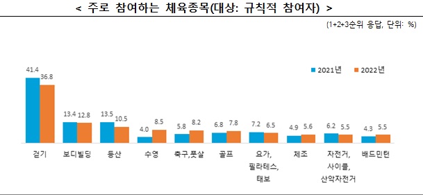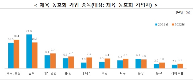 ü ȣȸ(б Ƹ, Ŭ ) Է 16.9% 3.4%Ʈ ߴ. ౸/Dz(18.4%, 2021 16.5%), (16.7%, 21.8%), (9.7%, 8.4%), (7.7%, 6.6%), ״Ͻ(7.1%, 3.8%) ̴.