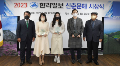 12ÀÏ ÇѶóÀϺ¸ 3Ãþ ´ëȸÀǽǿ¡¼ 2023 ÇѶóÀϺ¸ ½ÅÃá¹®¿¹ ½Ã»ó½ÄÀÌ ¿·È´Ù. ¿ÞÂʺÎÅÍ ±è°ÇÀÏ ÇѶóÀϺ¸ ´ëÇ¥ÀÌ»ç, ½ÅÃá¹®¿¹·Î ¹®´Ü¿¡ µ¥ºßÇÑ ÀåÇö¼÷ ½ÃÀÎ, ±è¹ÌÁø ½ÃÁ¶½ÃÀÎÀ» ´ë½ÅÇØ ´ë¸®¼ö»óÇÑ µþ ±è°¡¿µ¾¾, ±èµ¿½Â ¼Ò¼³°¡¿Í ½Ã ºÎ¹® º»½ÉÀ» ¸ÃÀº ½É»çÀ§¿ø ±èº´Åà ¹®ÇÐÆò·Ð°¡°¡ ±â³äÃÔ¿µÀ» Çϰí ÀÖ´Ù. À̻󱹱âÀÚ